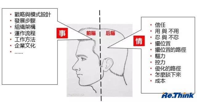 所以我就把過(guò)去20多年在跨國企業(yè)任職高管的實(shí)戰經(jīng)歷,和在國內當教授看項目的經(jīng)驗,消化吸收后變成比較通俗的思維框架,讓大家聽(tīng)了就可以用。比如“前腦策略,后腦謀略”,策略負責事,謀略負責情,后腦思維就是怎么處理好人,因為生意是人的生意。